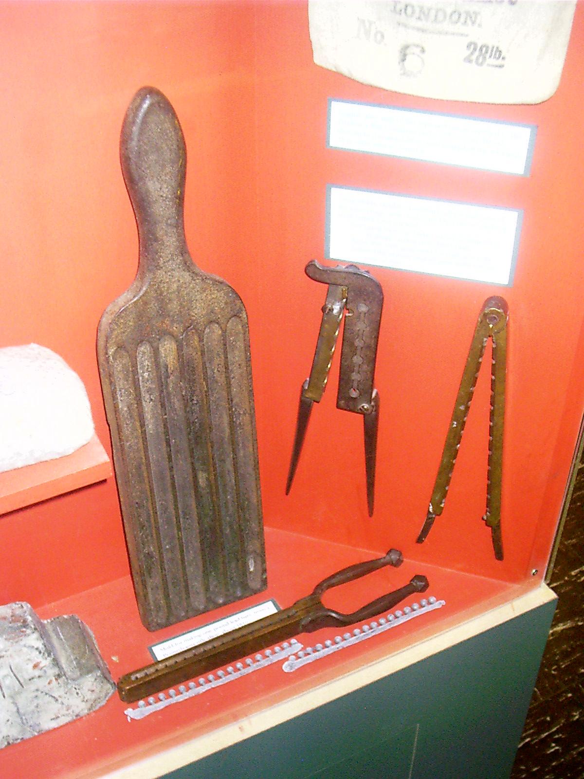 Bullet Molds, MFT, Chadron, NE"A special part of the museum's collection is firearms made exclusively for sale to Indians. It includes the earliest known intact trade gun, made in the Netherlands before 1650. The personal firearms of such famous Americans as John Kinzie, Kit Carson, Tecumseh, and Young Man Afraid of His Horses are on public exhibition. Over 200 Northwest guns manufactured between 1751 and 1900 in England, Belgium, and the United States are on exhibit. It is the largest and most comprehensive collection of these firearms in existence." |